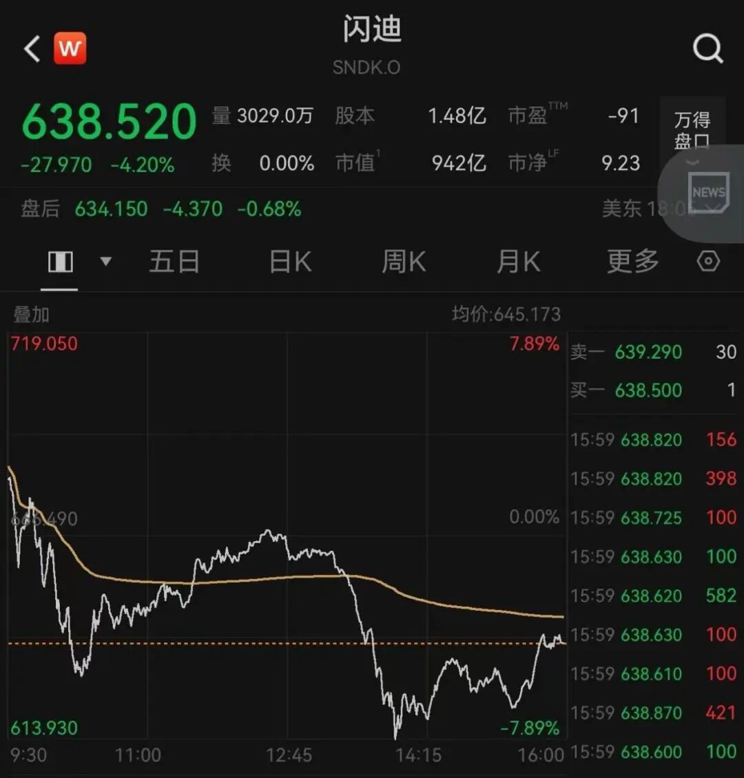 做空机构香橼资本(Citron Research)称,已经对存储大牛股闪迪建立空头头寸。受此影响,闪迪股价盘中跳水后拉升转涨,最终收跌4.2%。